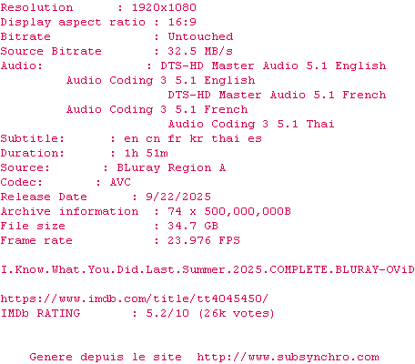 Voir le nfo de la release I.Know.What.You.Did.Last.Summer.2025.COMPLETE.BLURAY-OViD