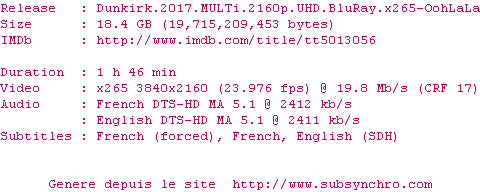 Voir le nfo de la release Dunkirk.2017.MULTi.2160p.UHD.BluRay.x265-OohLaLa