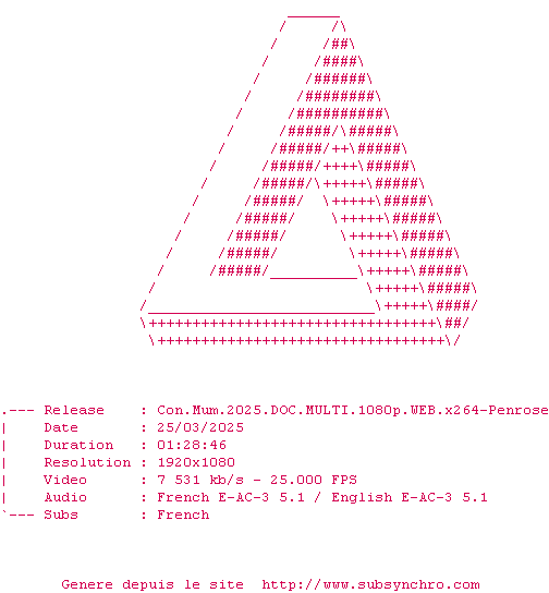 Voir le nfo de la release Con.Mum.2025.DOC.MULTI.1080p.WEB.x264-Penrose