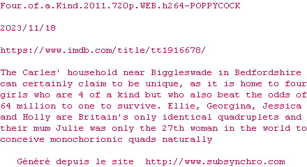 Voir le nfo de la release Four.Of.A.Kind.2011.720p.WEB.H264-POPPYCOCK