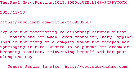 Voir le nfo de la release The.Real.Mary.Poppins.2013.1080p.WEB.H264-POPPYCOCK