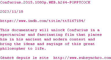 Voir le nfo de la release Confucius.2015.1080p.WEB.H264-POPPYCOCK