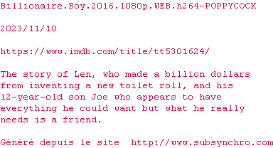 Voir le nfo de la release Billionaire.Boy.2016.1080p.WEB.H264-POPPYCOCK