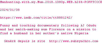 Voir le nfo de la release Manhunting.With.My.Mum.2018.1080p.WEB.H264-POPPYCOCK