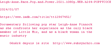Voir le nfo de la release Leigh-Anne.Race.Pop.And.Power.2021.1080p.WEB.H264-POPPYCOCK