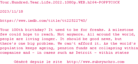 Voir le nfo de la release Your.Hundred.Year.Life.2022.1080p.WEB.H264-POPPYCOCK