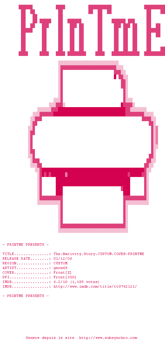 Voir le nfo de la release The.Nativity.Story.CUSTOM.COVER-PRINTME