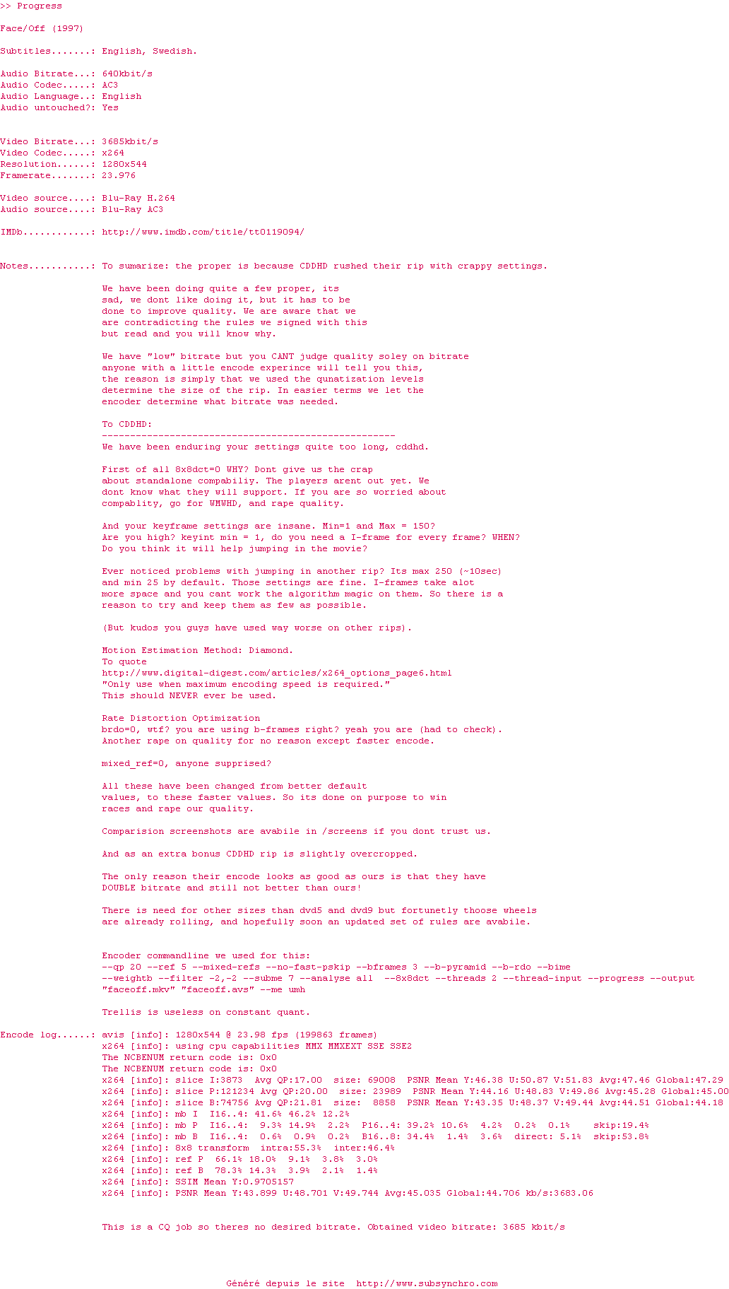 Voir le nfo de la release Face.Off.1997.720p.Bluray.x264.PROPER.READNFO-PROGRESS