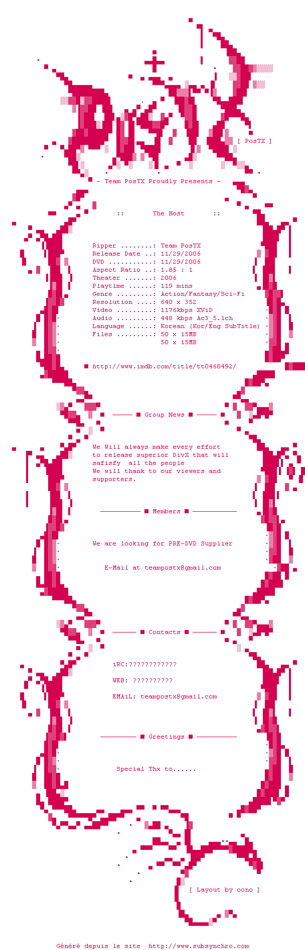 Voir le nfo de la release The.Host.DVDRip.XviD-PosTX