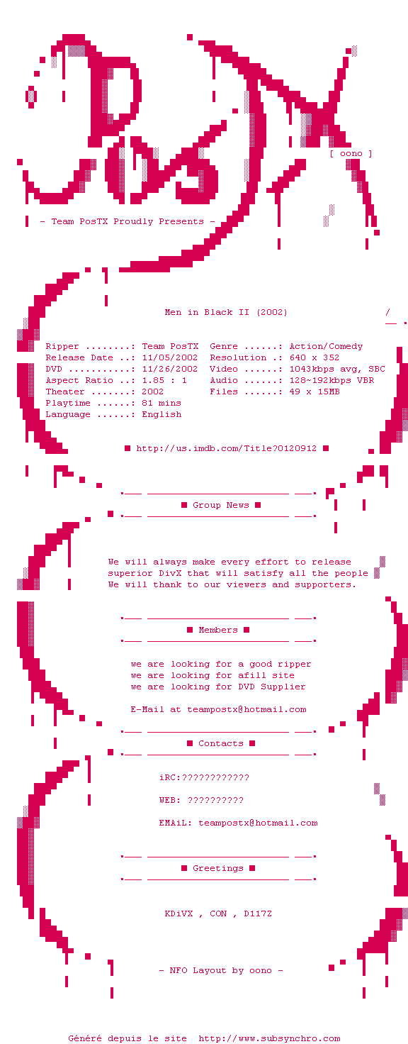 Voir le nfo de la release Men.In.Black.2.DVDrip.DivX-PosTX