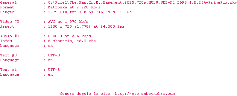 Voir le nfo de la release The.Man.In.My.Basement.2025.720p.HULU.WEB-DL.DDP5.1.H.264-PrimeFix