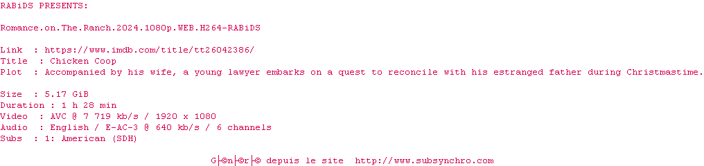 Voir le nfo de la release Romance.On.The.Ranch.2024.1080p.WEB.H264-RABiDS