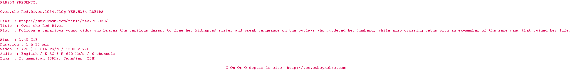 Voir le nfo de la release Over.The.Red.River.2024.720p.WEB.H264-RABiDS