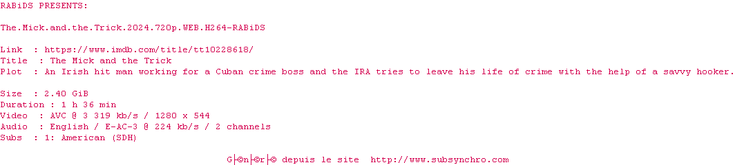 Voir le nfo de la release The.Last.Redemption.2024.720p.WEB.H264-RABiDS