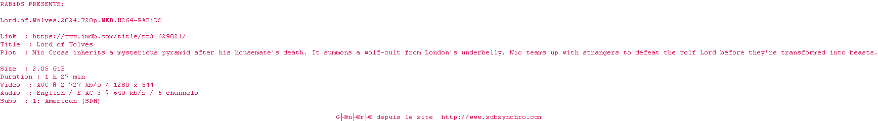 Voir le nfo de la release Deadzone.2024.720p.WEB.H264-RABiDS