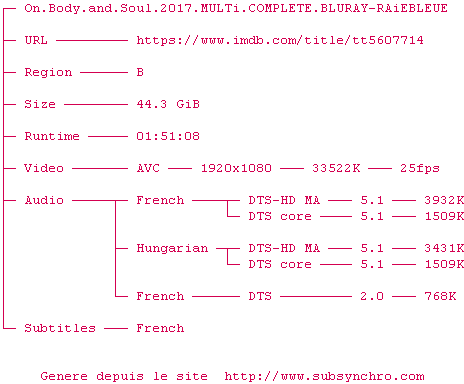 Voir le nfo de la release On.Body.And.Soul.2017.MULTi.COMPLETE.BLURAY-RAiEBLEUE