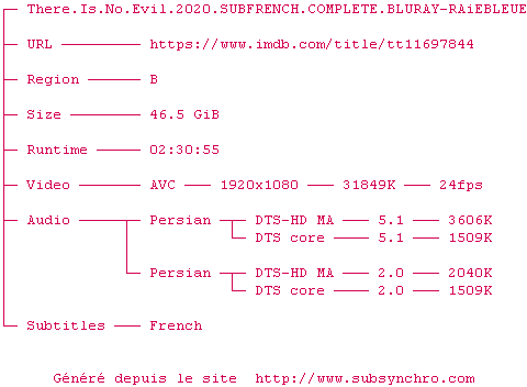 Voir le nfo de la release There.Is.No.Evil.2020.SUBFRENCH.COMPLETE.BLURAY-RAiEBLEUE