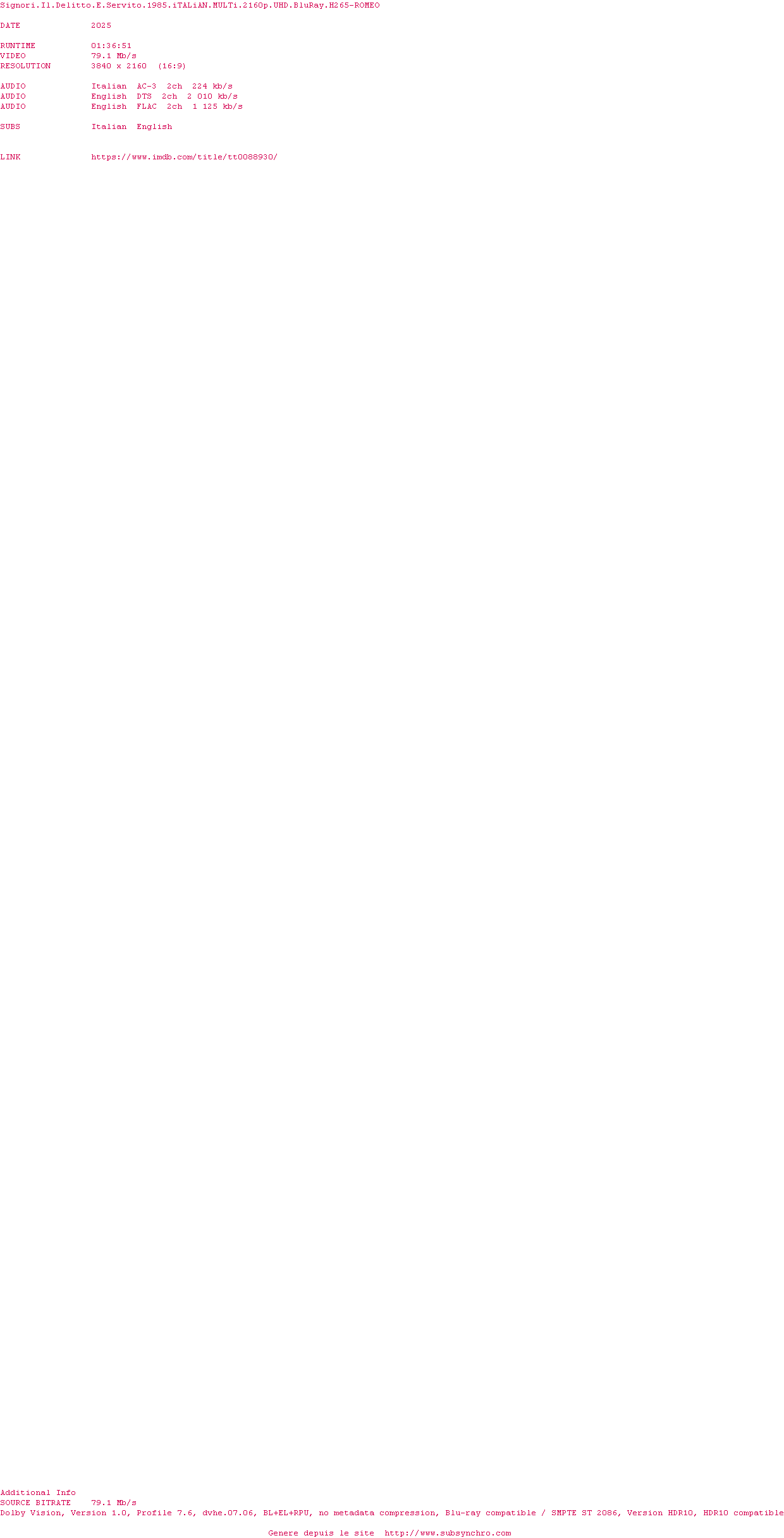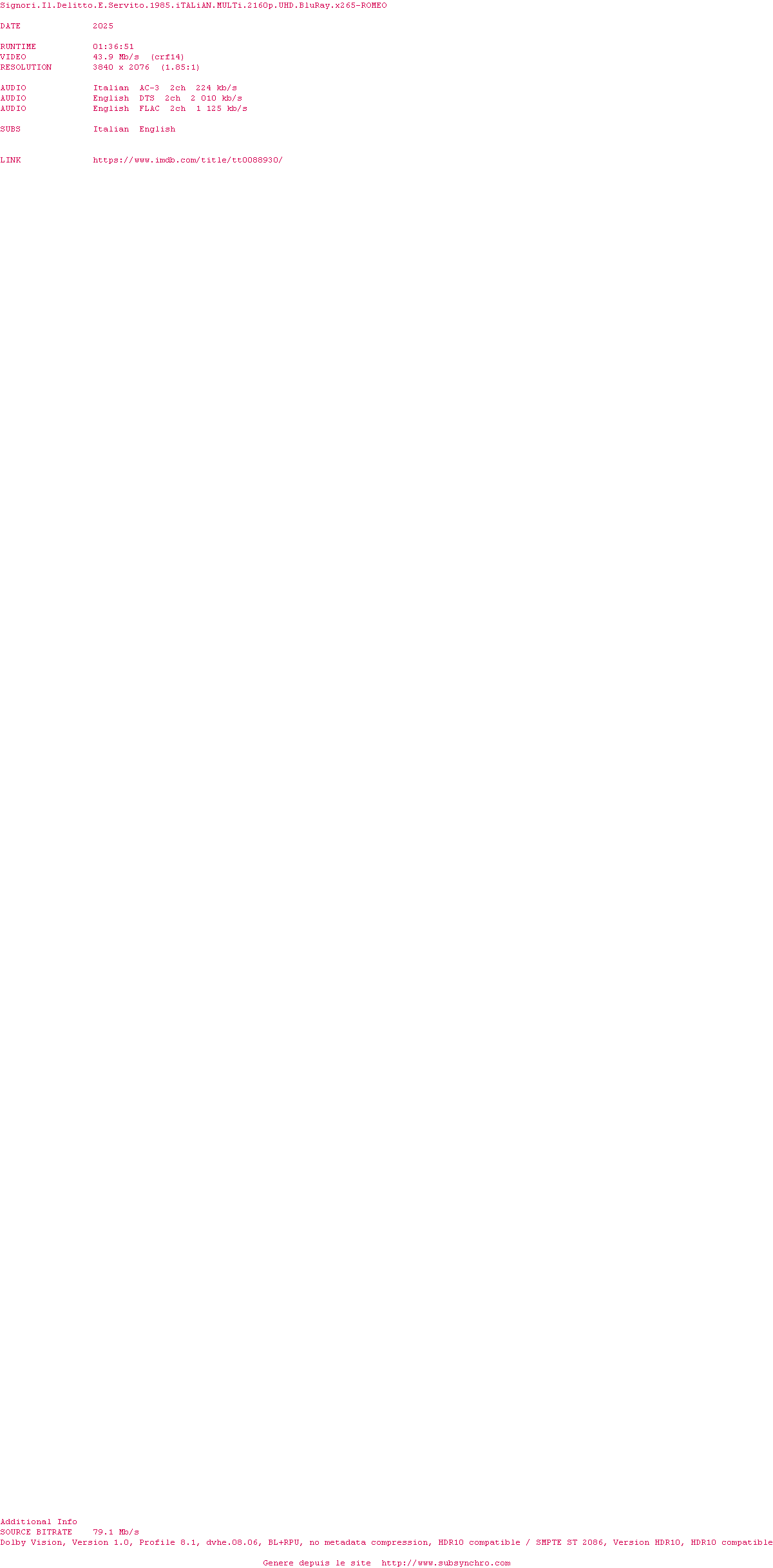 Voir le nfo de la release Il.Cavaliere.Pallido.1985.ITALiAN.MULTi.2160p.UHD.BluRay.x265-ROMEO
