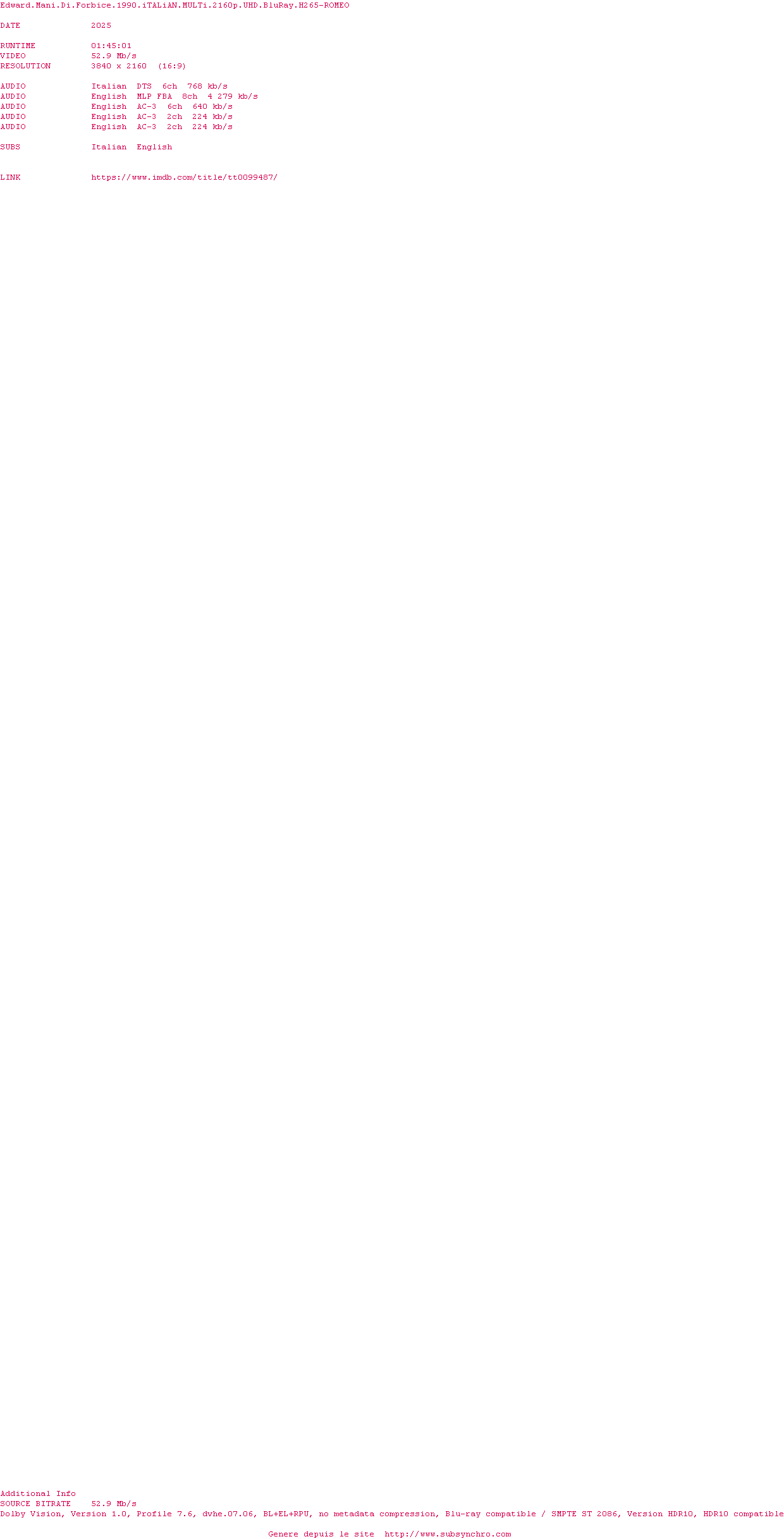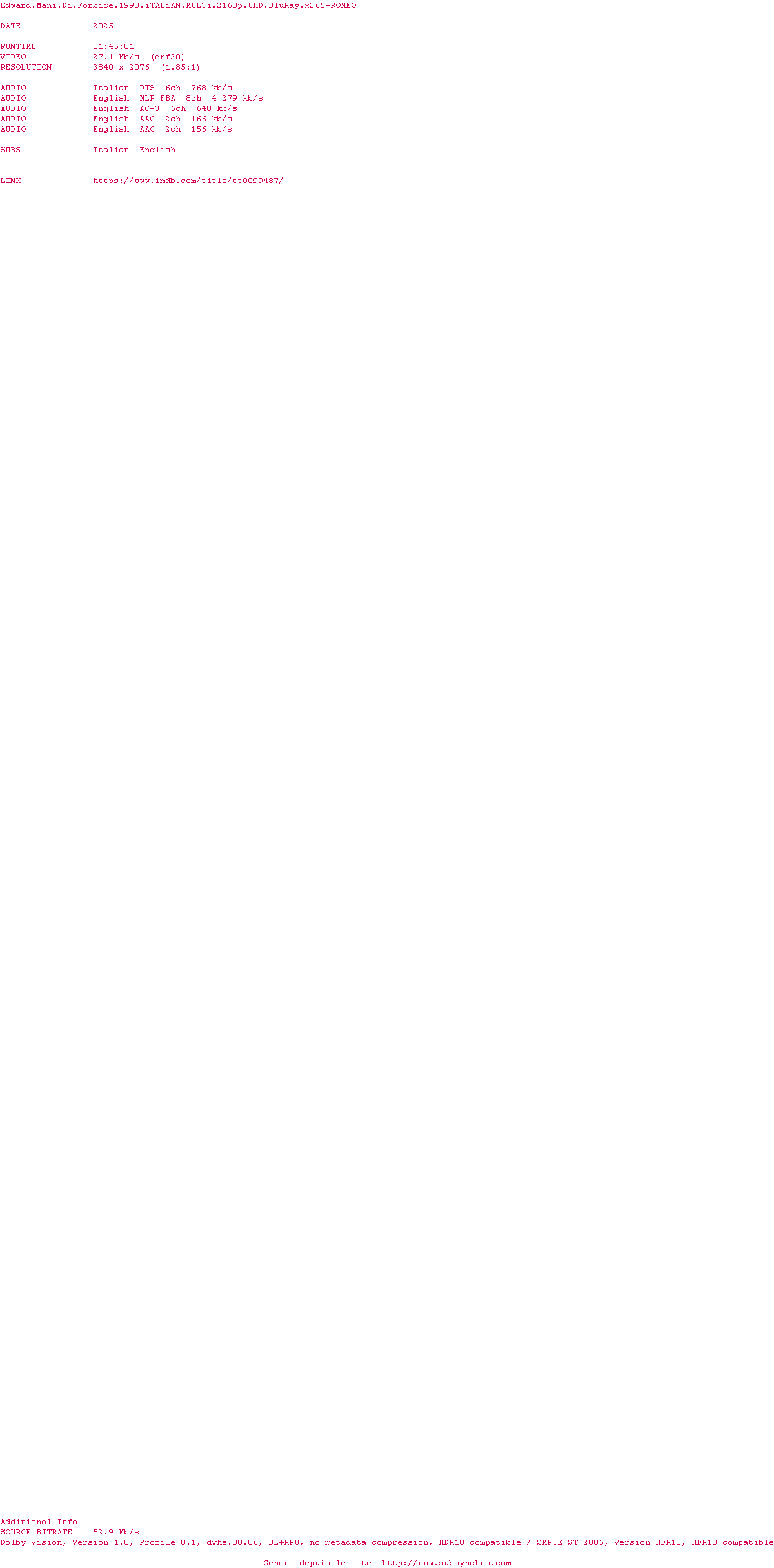 Voir le nfo de la release Il.Cavaliere.Pallido.1985.ITALiAN.MULTi.2160p.UHD.BluRay.H265-ROMEO