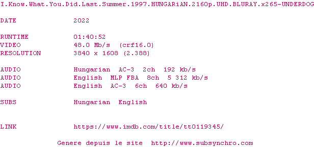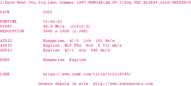 Voir le nfo de la release Io.Sono.L.Abisso.2022.ITALiAN.MULTi.1080p.BLURAY.x264-ROMEO
