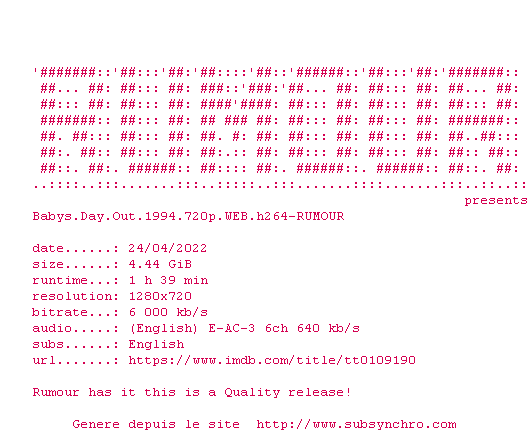 Voir le nfo de la release Benny.Loves.You.2019.720p.WEB.H264-RUMOUR