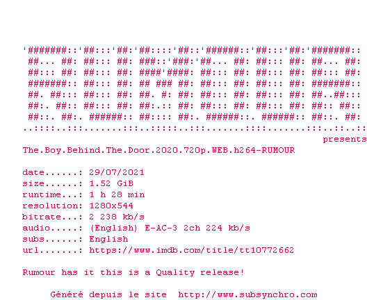 Voir le nfo de la release The.Boy.Behind.The.Door.2020.720p.WEB.H264-RUMOUR