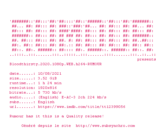 Voir le nfo de la release Bloodthirsty.2020.1080p.WEB.H264-RUMOUR