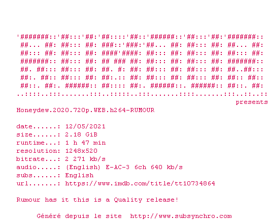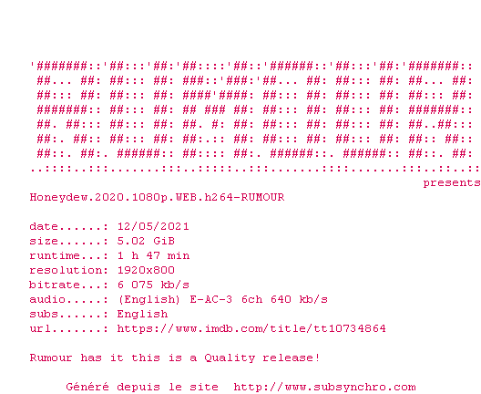 Voir le nfo de la release Honeydew.2020.1080p.WEB.H264-RUMOUR