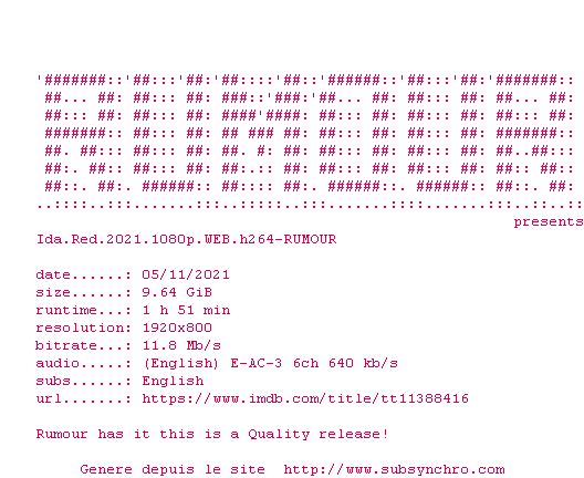 Voir le nfo de la release Ida.Red.2021.1080p.WEB.H264-RUMOUR