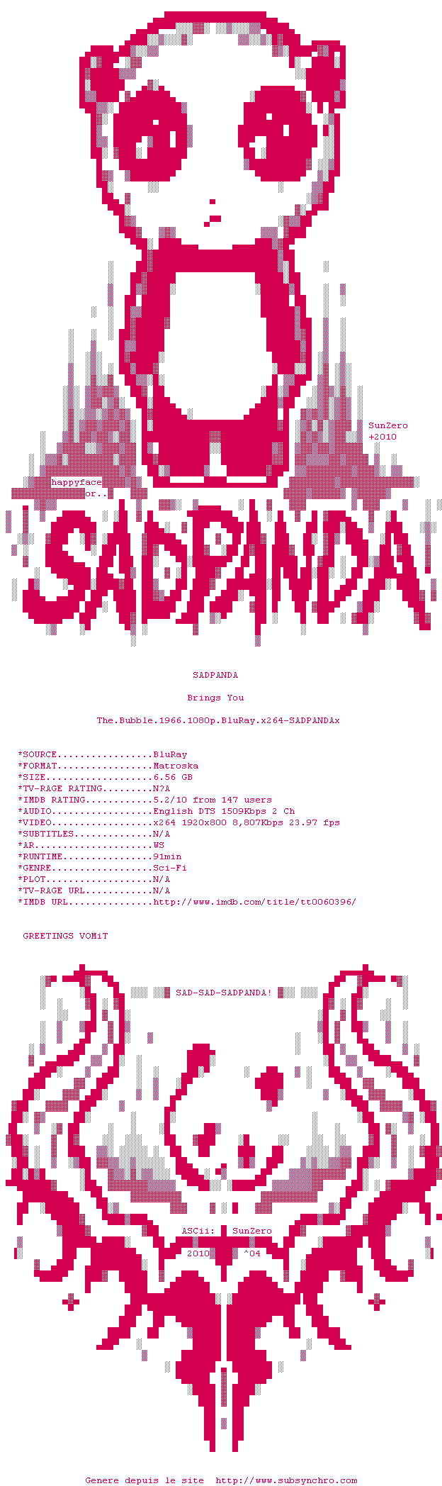 Voir le nfo de la release The.Bubble.1966.1080p.BluRay.x264-SADPANDAx