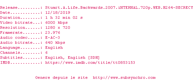 Voir le nfo de la release Stuart.A.Life.Backwards.2007.iNTERNAL.720p.WEB.H264-SECRECY