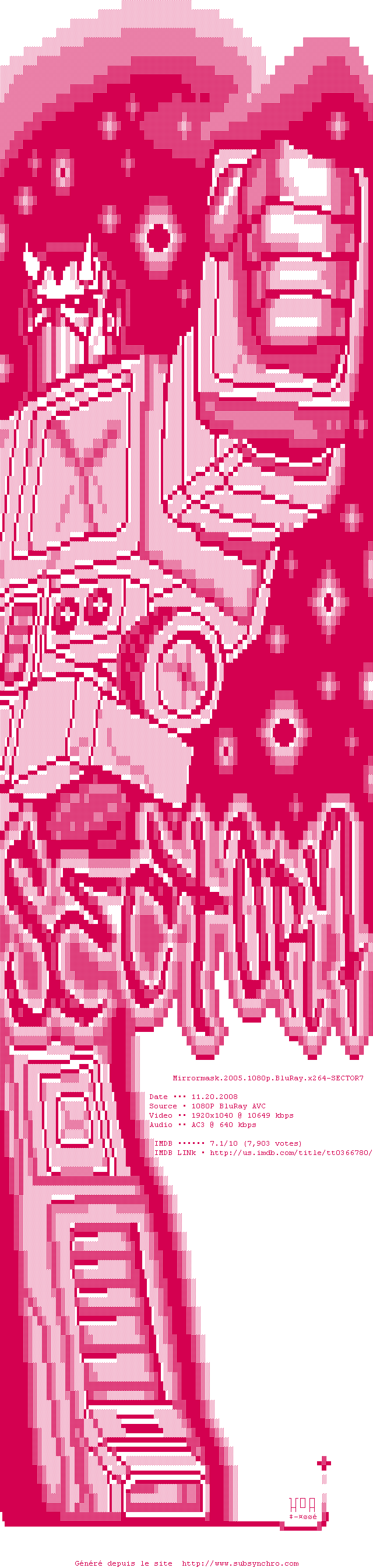 Voir le nfo de la release Mirrormask.2005.1080p.BluRay.x264-SECTOR7