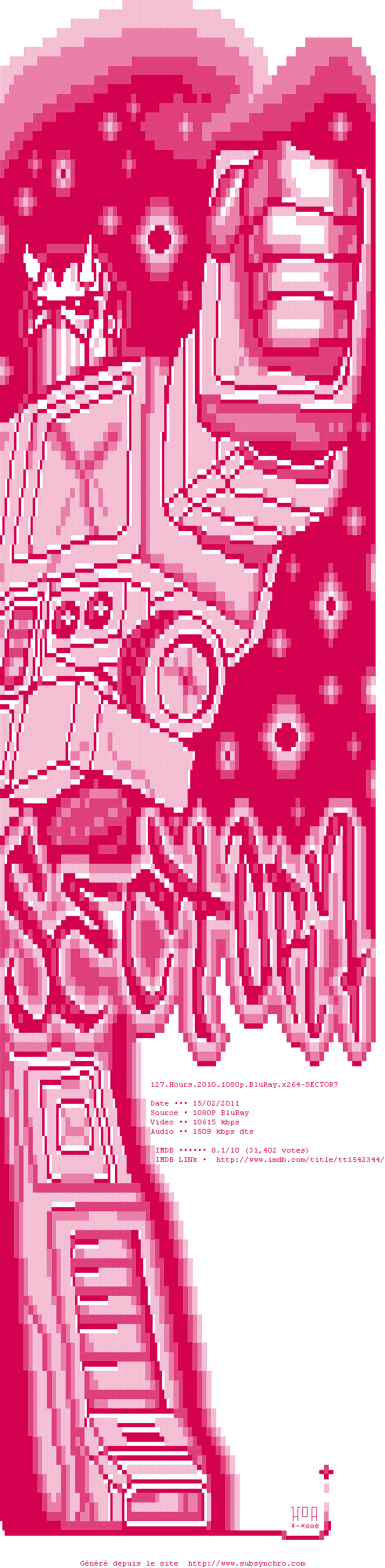 Voir le nfo de la release 127.Hours.2010.1080p.BluRay.x264-SECTOR7