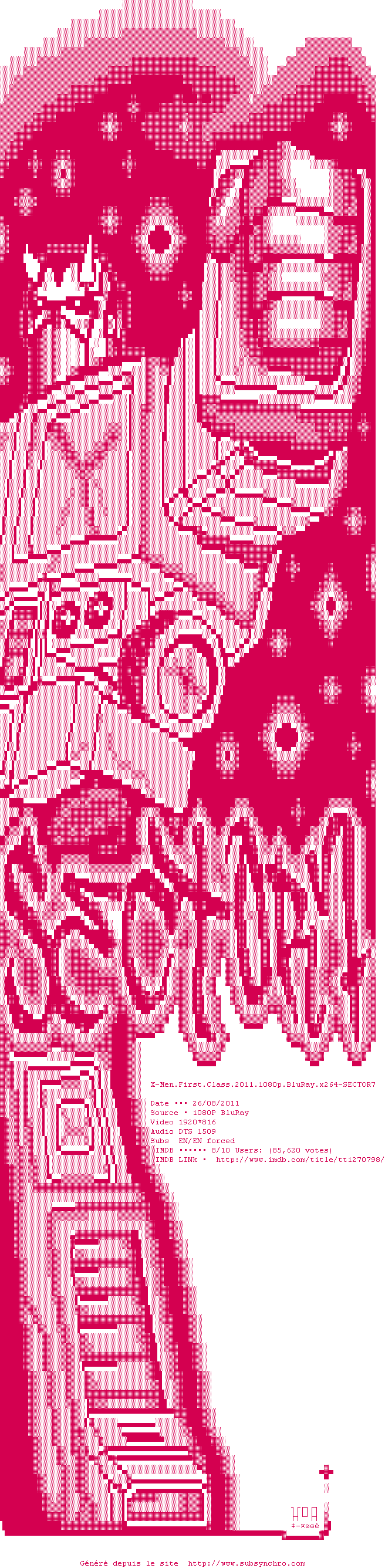 Voir le nfo de la release X-Men.First.Class.2011.1080p.BluRay.x264-SECTOR7