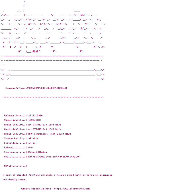 Voir le nfo de la release House.Of.Traps.1982.COMPLETE.BLURAY-SHAOLiN
