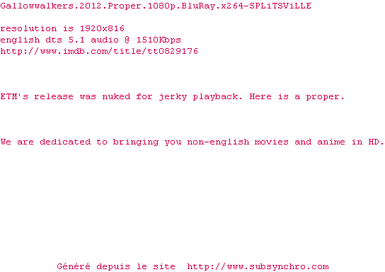 Voir le nfo de la release Gallowwalkers.2012.Proper.1080p.BluRay.x264-SPLiTSViLLE