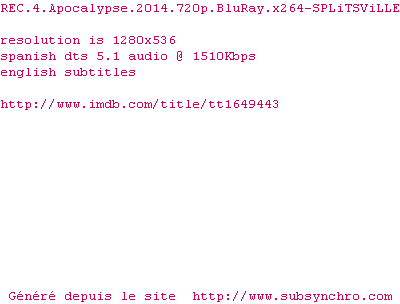 Voir le nfo de la release REC.4.Apocalypse.2014.BDRip.x264-SPLiTSViLLE