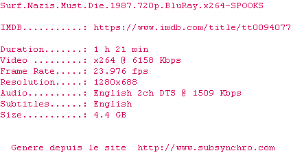Voir le nfo de la release Surf.Nazis.Must.Die.1987.720p.BluRay.x264-SPOOKS