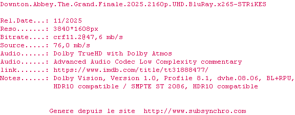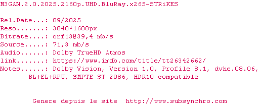 Voir le nfo de la release Fast.X.2023.REPACK.2160p.UHD.BluRay.x265-STRiKES