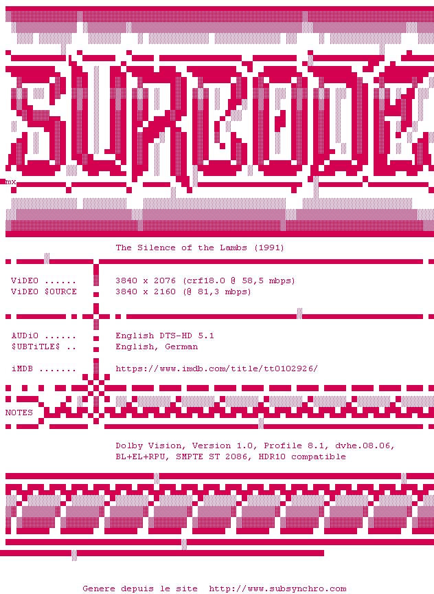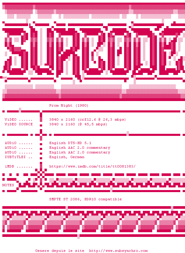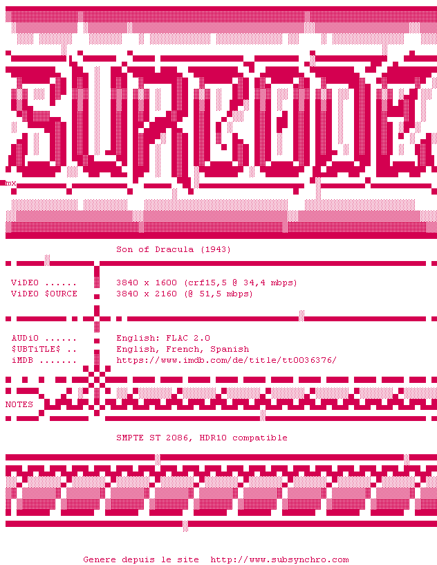 Voir le nfo de la release Son.Of.Dracula.1943.2160p.UHD.BluRay.x265-SURCODE