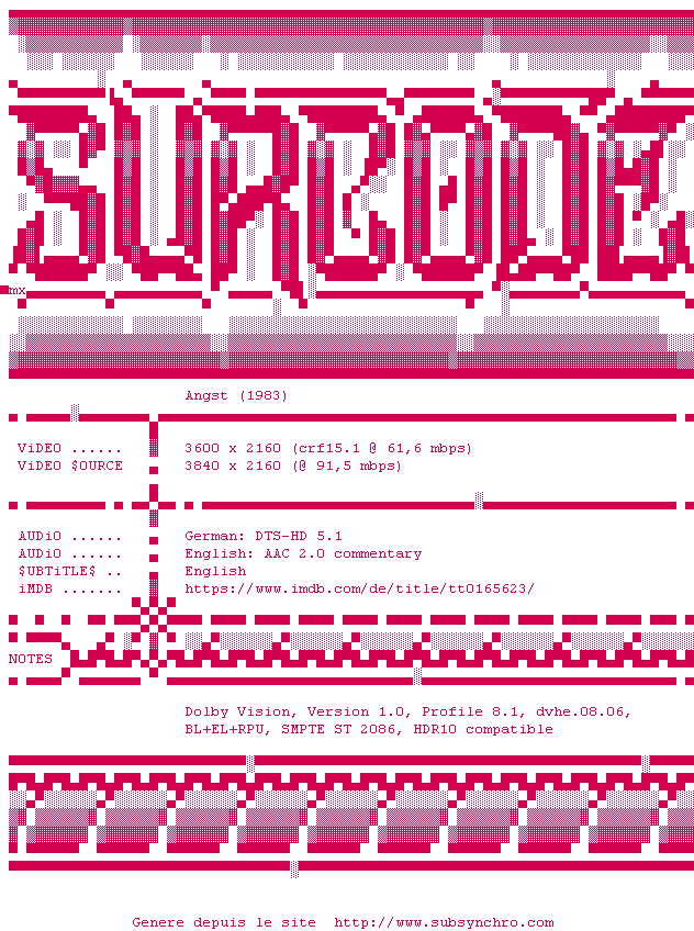 Voir le nfo de la release Diva.1981.COMPLETE.UHD.BLURAY-SURCODE