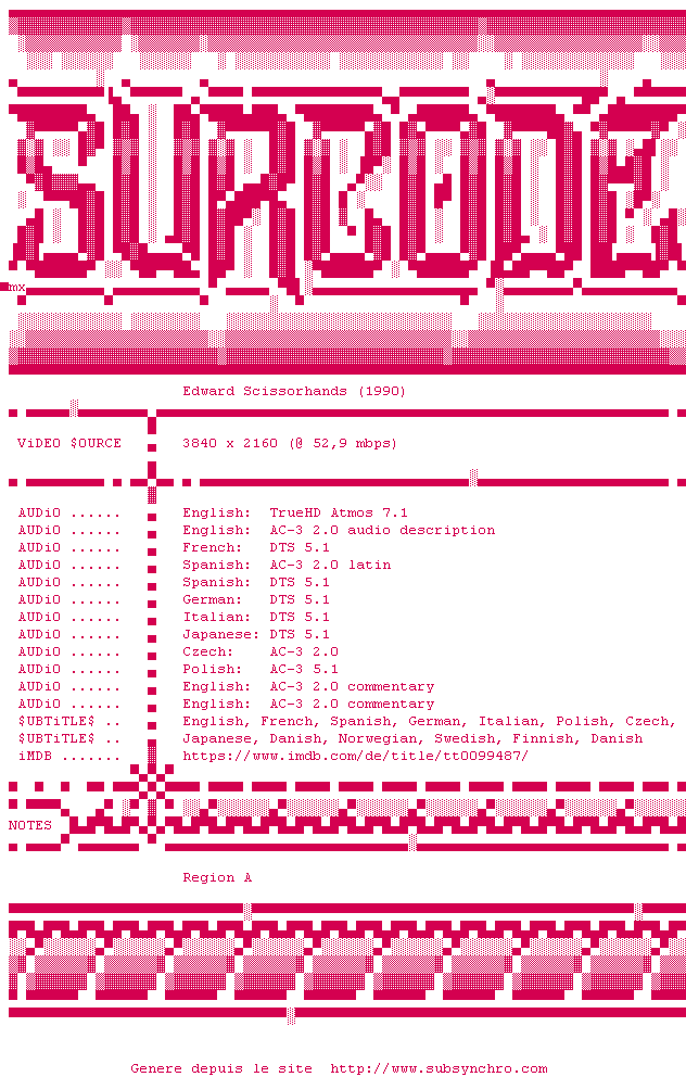 Voir le nfo de la release Edward.Scissorhands.1990.COMPLETE.UHD.BLURAY-SURCODE