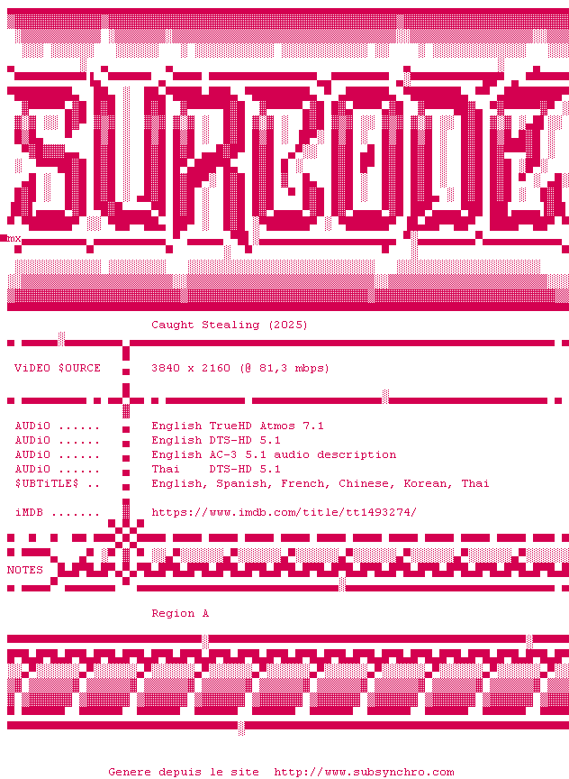Voir le nfo de la release Aeon.Flux.2005.COMPLETE.UHD.BLURAY-SURCODE