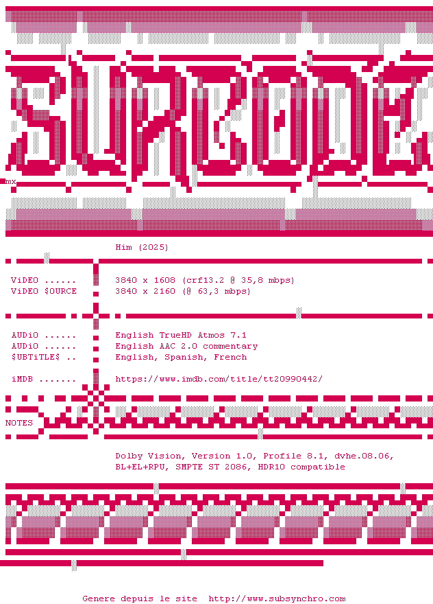 Voir le nfo de la release F1.The.Movie.2025.2160p.UHD.BluRay.x265-SURCODE