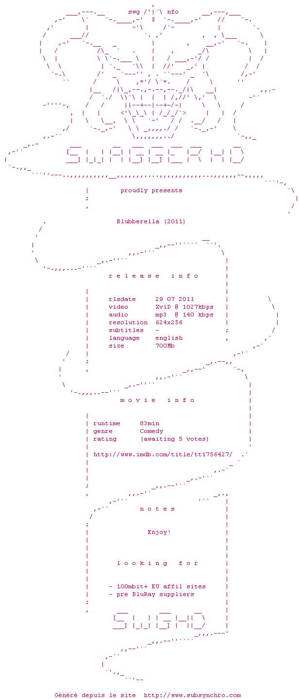 Voir le nfo de la release Blubberella.2011.BDRip.XviD-SWAGGER