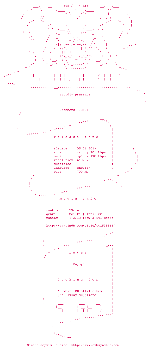Voir le nfo de la release Grabbers.2012.BDRiP.XviD-SWAGGER