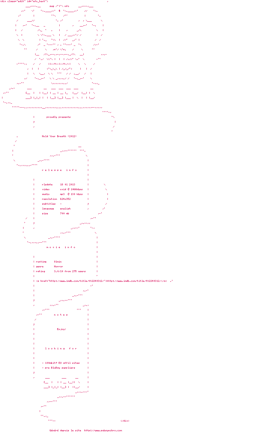 Voir le nfo de la release Hold.Your.Breath.2012.BDRiP.XviD-SWAGGER