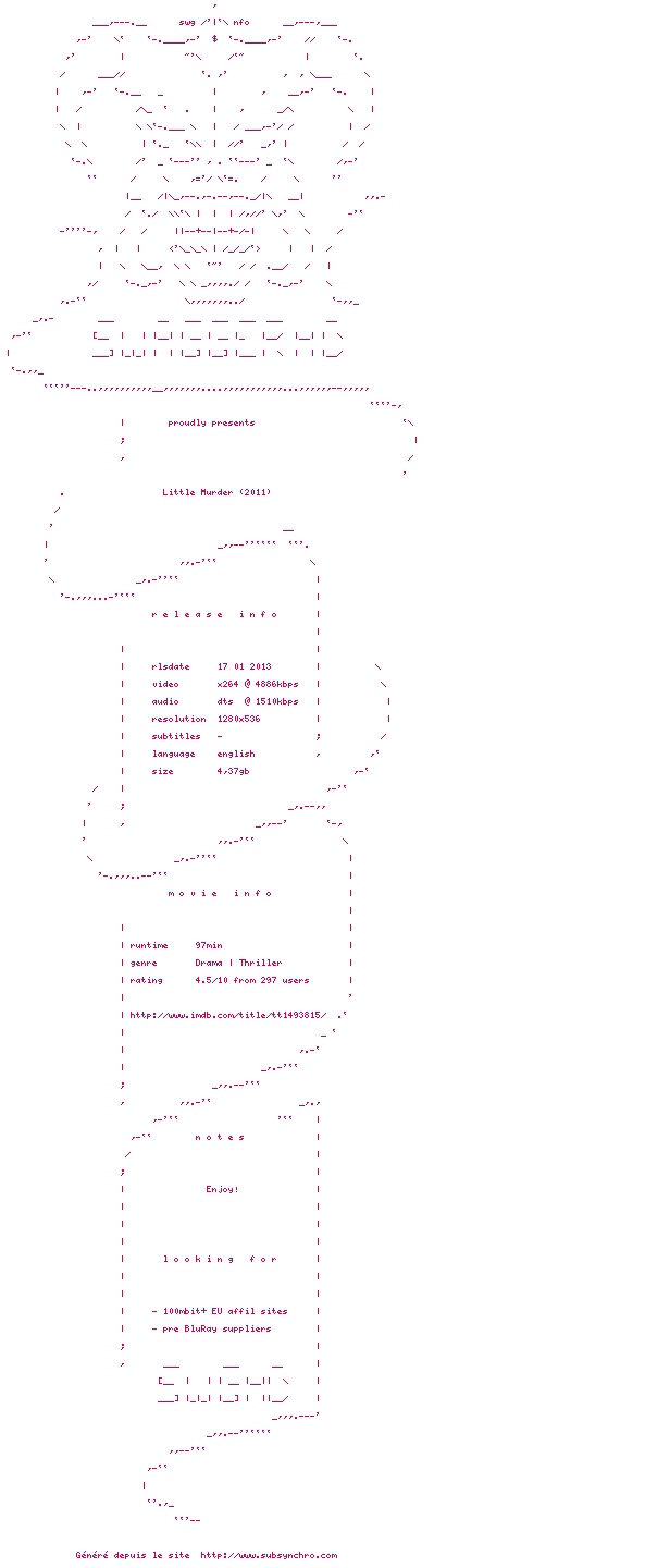 Voir le nfo de la release Little.Murder.2011.720p.BluRay.x264-SWAGGERHD