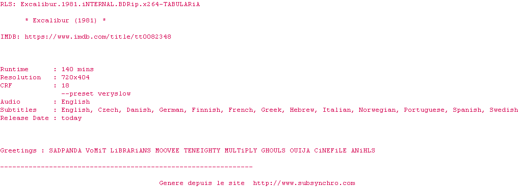 Voir le nfo de la release Hamlet.2024.BDRip.x264-TABULARiA