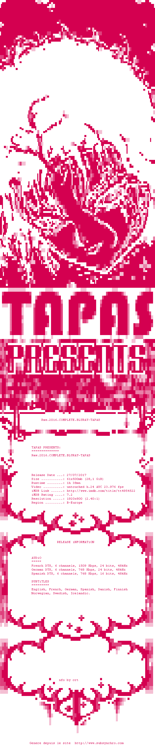 Voir le nfo de la release Raw.2016.COMPLETE.BLURAY-TAPAS